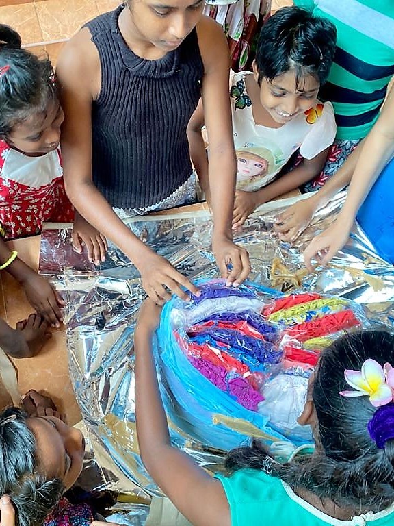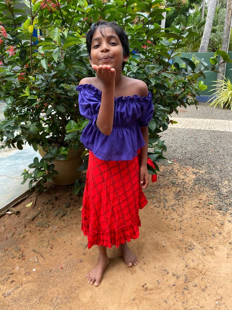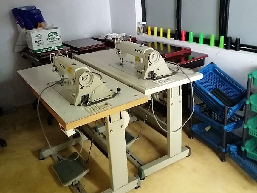 Das Ehepaar Nadee und Siri aus Sri Lanka, gute Freunde von Vishmis Patenmutter Paula aus der Schweiz, hat im Januar diesen Jahres eine kleine Schneiderei gegründet. Anlass dazu waren die durch Corona verlorenen Jobs in der Tourismus-Branche. Da Frank und Julia die Beiden durch Paula schon sehr lange kennen und sie gerne auch unterstützen wollten, haben sie aus der alten Schneiderei im Trainingscenter insgesamt 7 Nähmaschinen, passende Ablagekörbe, Reisverschlüsse, Knöpfe, Zuschnittmesser und -muster, Maßbänder und anderes Zubehör für das kleine Unternehmen P&N Clothing gespendet.