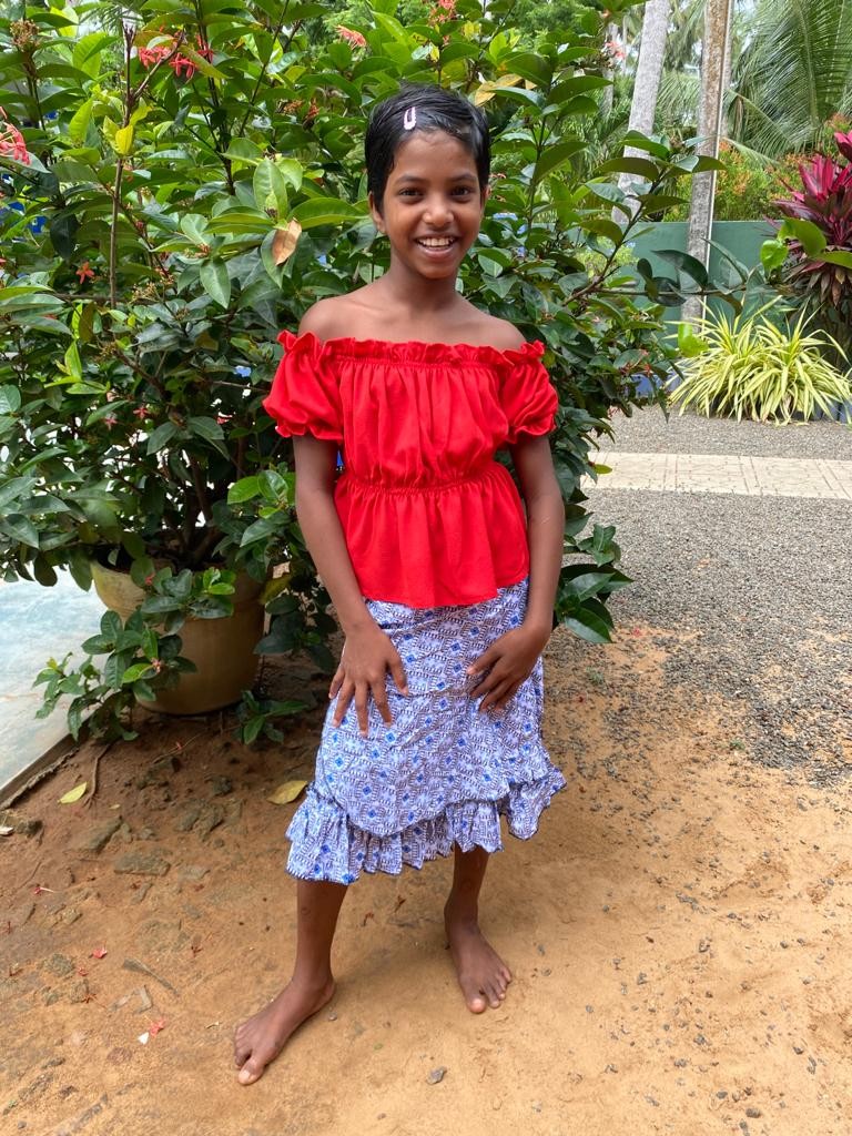 Über das Forum Sri Lanka Board hatten ein paar engagierte Pateneltern dann zusammen mit Paula die Idee, das Geschäft der kleinen Schneiderei etwas anzukurbeln, indem einige Bekleidungs-Sets für die Mädels des Angel Homes gefertigt und von den Pateneltern bezahlt werden. Aus diesem Grund durfte ich bei den Mädchen, die weniger Kleidung besitzen, vor ein paar Wochen Maß nehmen, damit die neuen hübschen Klamotten auch richtig passen! Nach ihrer Lieblingsfarbe habe ich sie auch gefragt. Rika und Heimmutter Darshini haben mir dabei geholfen. Aber warum wir sie ausgemessen haben, habe ich ihnen nicht erzählt - obwohl sie mich natürlich ganz neugierig gefragt haben. Ich war mir sicher, dass sie dies bis zur Ankunft der Kleider schon längst wieder vergessen haben.