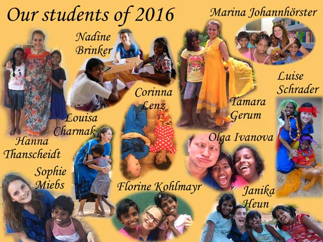 Und endlich ist sie fertig; unsere Praktikanten-Collage für das Jahr 2016. Hier seht ihr alle engagierten Mädels, die uns im letzten Jahr bei der Arbeit im Angels Home unterstützt haben. Wir bedanken uns noch einmal herzlich für euren Einsatz und wünschen euch für die berufliche und private Zukunft alles, alles Gute! Lasst ruhig immer mal was von euch hören!!!