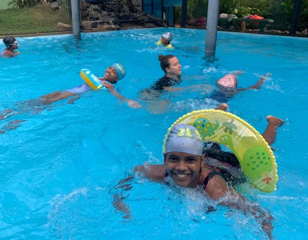 Seit einigen Wochen gehen wir mit den Mädels in den Pool, um ihnen das Schwimmen beizubringen. Ein paar der Mädels sind richtige Wasserratten und haben sich sehr gefreut, als sie gehört haben, dass wieder Schwimmstunden stattfinden.