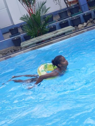 Einige Mädchen konnten bereits ziemlich gut schwimmen. Andere haben sich anfangs nicht getraut, doch mit viel Überzeugung und mit unserer Unterstützung sind auch sie ein paar Bahnen geschwommen. Theyaga hatte besonders Spaß daran, nach den Ringen zu tauchen. Malithi, die sonst eher zurückhaltend ist, ist im Pool richtig aufgetaut. Zu Beginn der Stunde hat sie sich erstmal nur mit einem Schwimmreifen ins tiefe Wasser getraut, doch nachdem sie sich ein wenig sicherer gefühlt hat und wir ihr gut zugesprochen haben, hat es auch ohne Schwimmreifen super geklappt. Es war schön zu sehen, wie sie sich darüber gefreut hat. Sie wollte am liebsten gar nicht mehr aus dem Wasser.