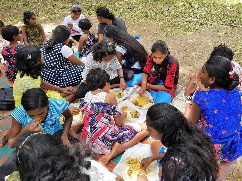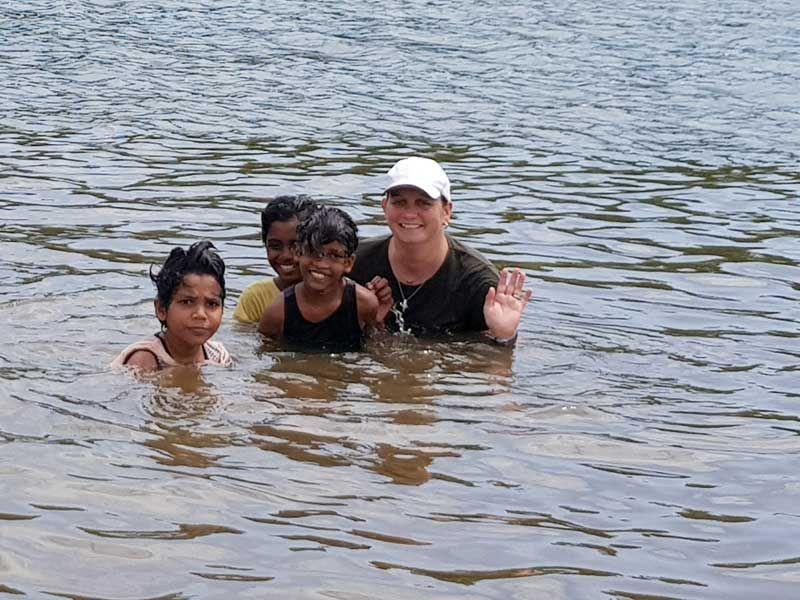 Nach dem Plantschen und großer Umzieh-Aktion im Bus spielten wir ein wenig Volleyball, unterhielten uns und ließen ein wenig die Seele baumeln. Für viele Mädchen war es toll, dass unsere ehemalige Matron Theekshani hinzugestoßen ist, die mit ihrer kleinen Familie ganz in der Nähe des Flusses lebt. Wir haben nach wie vor ein gutes Verhältnis und somit gab es allerhand zu quatschen, auch mit den derzeitigen Matrons und den älteren Mädchen.