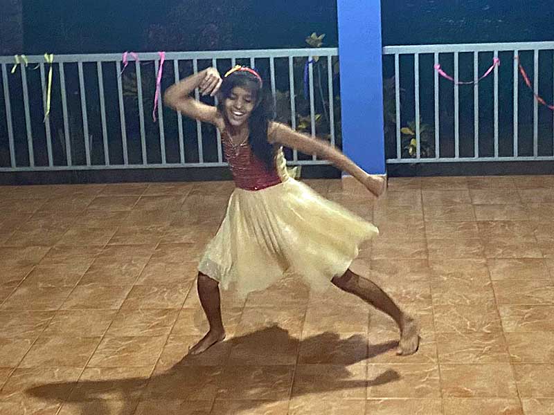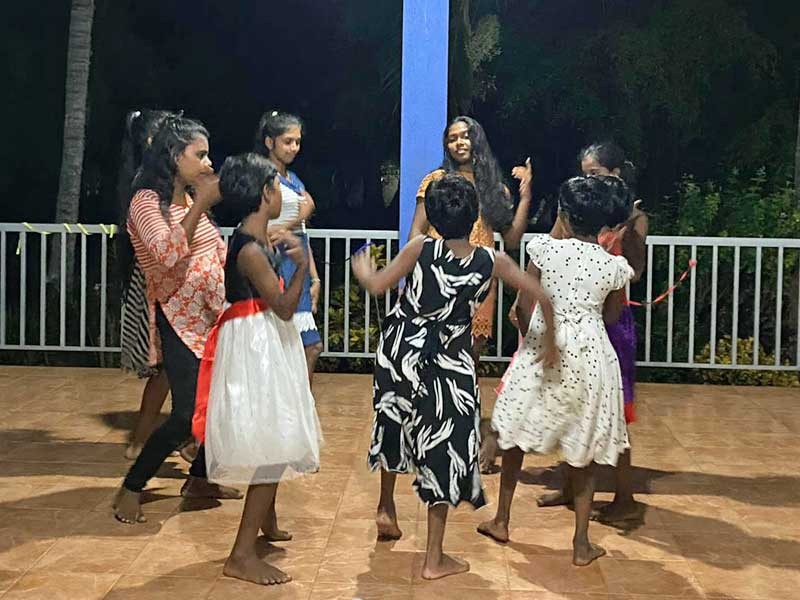 Dass wir hier im Angels Home einige Tanztalente haben, haben wir ja schon bei den letzten Partys sehen können. Am Samstagabend haben Nena und ich einen Wettbewerb veranstaltet. Wir haben die Mädels in 3 Gruppen eingeteilt und sie haben zu ihrem Lieblingslied einen Tanz einstudiert. Wenn ich Lieblingslied sage, rede ich natürlich von Coca Cola, das läuft eigentlich immer mehrmals rauf und runter, wenn wir die Box anmachen. Also es ging los mit den Proben und sofort haben bestimmte Mädels die Führung übernommen. In der 1. Gruppe war es Madumali, in der 2. Theyaga und in der 3. Hasini. Bei Madumali und Theyaga ist mir schon am Anfang aufgefallen, wie gerne sie tanzen. Wenn wir sonntagmorgens Bollywood-Tanzworkout machen, tanzen die beiden auch immer vor.