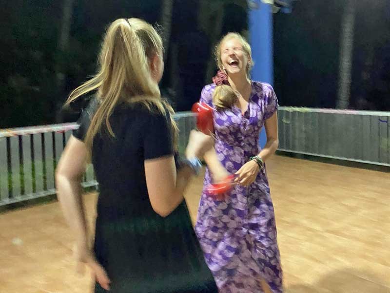 Nach den einzelnen Tanzvorführungen durften die Mädels noch etwas frei tanzen und sie haben versucht, mir und Nena das Bollywood-Tanzen beizubringen. Das hat leider nicht so gut geklappt. Ich weiß nicht genau, ob es einfach Hemmungen sind oder wir den Hüftschwung nicht im Blut haben. Vielleicht braucht es auch noch etwas mehr Training. Zum Glück haben wir dafür ja noch ein bisschen Zeit.