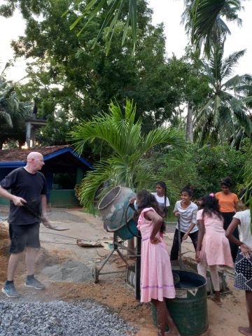 Hierzu wurde der Zement von Frank zusammen gemischt und die Mädchen haben Eimer für Eimer den Weg damit aufgeschüttet. Jede helfende Hand wurde gebraucht und so halfen auch Franzi und ich mit. Es hat großen Spaß gemacht und kaum einer blieb sauber.