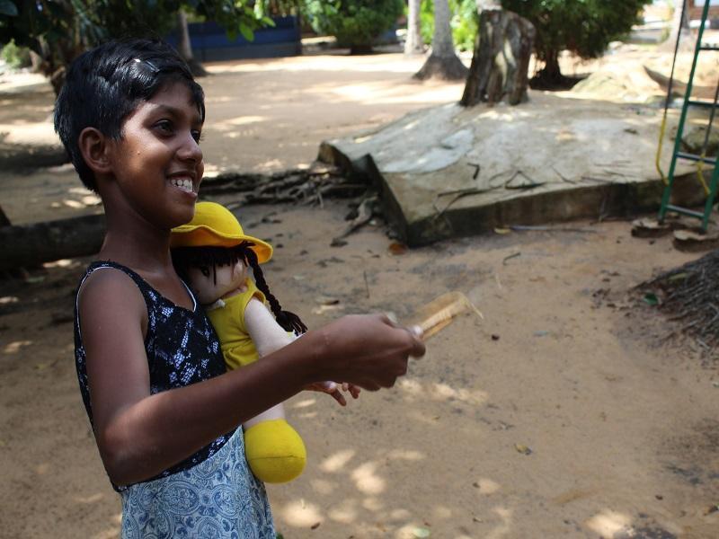 Mit einigen wenigen Schritten zaubern die Mädchen daraus eine Spielmöglichkeit, wobei sich die kleine Kokosnuss durch die richtige Handbewegung um sich selber dreht.