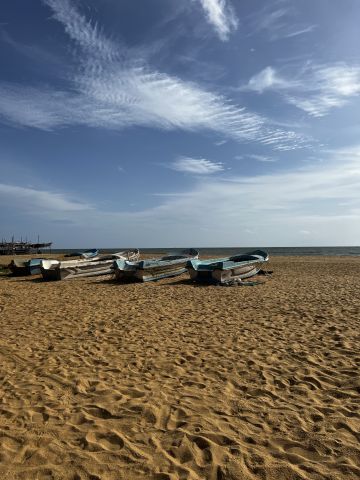 An meinem dritten freien Donnerstag habe ich dann einen Ausflug ins 45-km-entfernte Negombo gemacht. Dort habe ich als erstes eine Kokosnuss-Bar angesteuert, die lediglich aus einem Tisch, zwei Stühlen und einem Sonnenschirm bestand. Ich bekam jedoch sofort eine King-Kokosnuss serviert und war damit glücklich. Dann ging es für mich weiter in ein kleines Café, was von einem Engländer geführt wird. Es gab dort einheimische sowie internationale Gerichte, die auch als vegan angeboten werden. Im Anschluss wollte ich noch etwas die Sonne und den Strand genießen und bin in ein Hotel-Resort gegangen, um mir einen Tag am Pool zu buchen. Das Hotel war direkt am Strand gelegen, allerdings durfte ich aufgrund der Strömung nicht im Meer baden. Da es momentan generell an Touristen mangelt, kann es durchaus sein, dass man während man sich in Ruhe sonnt, nicht nur von einem oder zwei Händlern sondern gleich einem halben Dutzend angesprochen und zum Kauf von Ketten, Kleidern und Strandtüchern animiert wird. Irgendwann musste ich dann aber freundlich abwinken, weil ich sonst schlichtweg nicht mehr genügend Geld für meinen Bus gehabt hätte, um wieder nach Hause zu gelangen. Auf dem Weg zum Bus wollte ich noch einen kleinen Snack in einer Bar zu mir nehmen, habe aber gerade als der Kellner meine Bestellung aufgenommen hatte, mit Erschrecken festgestellt, dass es schon relativ spät war und ich eigentlich schon längst auf dem Nachhauseweg sein müsste. Also habe ich mich dann nach dem schnellsten Weg zur nächsten Busstation erkundigt. Zu meinem Glück war einer der Kellner so nett und hat mich auf seinem Motorrad zur nächsten Haltestelle gefahren, wo ich dann von weiteren Menschen empfangen wurde, die mir mit vereinten Kräften geholfen haben, den richtigen Bus zu finden. Aufgrund der momentanen Benzinknappheit fahren weniger Busse und die die überhaupt noch in Betrieb sind, sind so voll, dass es schwer ist überhaupt noch reinzupassen, von einem Sitzplatz ganz zu schweigen. Dennoch sind die Menschen hier immer hilfsbereit und unterhalten sich mit voller Begeisterung mit der Fremden im Bus.