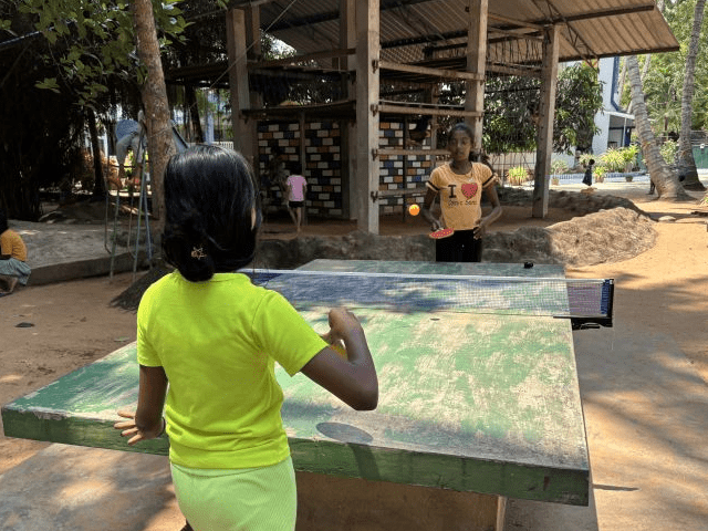 Zur Auszeit gehört hier unter anderem das Toben im Garten, Volleyball, Badminton oder Tischtennis spielen, um die überschüssige Energie schnell wieder loszuwerden. An diesem Tag wurde das Tischtennisnetz schnell aufgestellt, und der Spaß konnte beginnen! Die regenfreie Zeit wird natürlich sinnvoll genutzt, denn wann der nächste Sturm kommt, weiß hier niemand so genau. Typisch Sri Lanka eben. Wie ihr also schon erkennen könnt, spielt es keine Rolle, ob es sich um Arbeit in Bezug auf Schule, Hausaufgaben, Kochen, Lernen, Gartenpflege oder Wäsche machen handelt – die schönen Dinge wie Spielen im Garten, Lesen, Fernsehen, Schwimmen gehen oder Ausflüge an den Strand, zum Tempel oder in die Kirche kommen bei unseren Mädchen definitiv nicht zu kurz und genauso soll es doch sein!