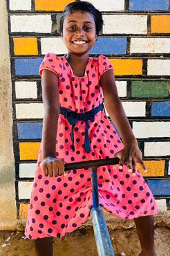 Sajani ist eins von diesen Mädchen, die man einfach mögen muss. Offen, neugierig, redselig – sie kommt mit jedem ins Gespräch, egal ob mit anderen Kindern oder mit Erwachsenen. Meist dauert es nur ein paar Minuten, bis sie anfängt zu erzählen – und das fast immer mit einem breiten, ehrlichen Lächeln im Gesicht.